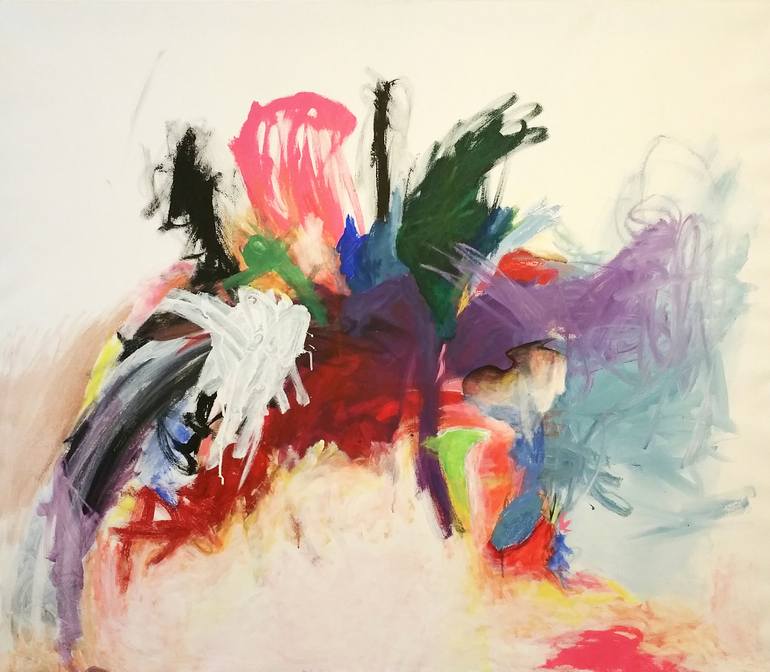 This painting belongs in a series of paintings in which I create in a meditative state, emptying my mind of expectations, plans and preconceived ideas, in immediacy and spontaneity. There is no draft, apart from - at times seeing an image in my minds eye, and transferring it directly to the canvas w...