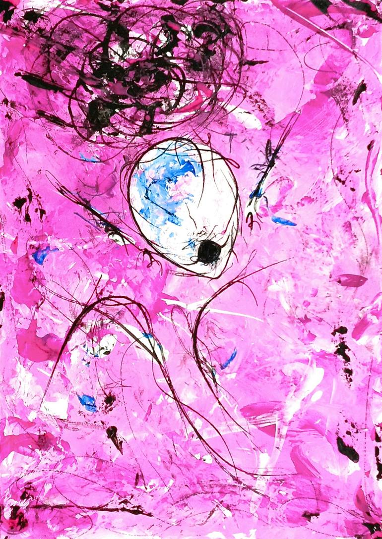 This is an original abstract woman portrait painting. This woman face art, measuring 5 x 7 inches (or 12.7 × 17.7 cm), is the perfect addition to any art collection or as a focal point in your living space. This vivid piece of soft pink abstract wall art adds a touch of originality and modern...