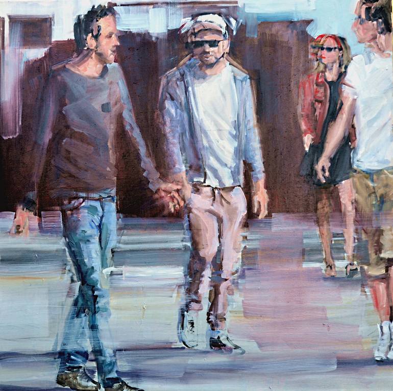 A summersday, centre town, random people crossing a square, knowing or not knowing each other. A daily situation. Are we strangers ?