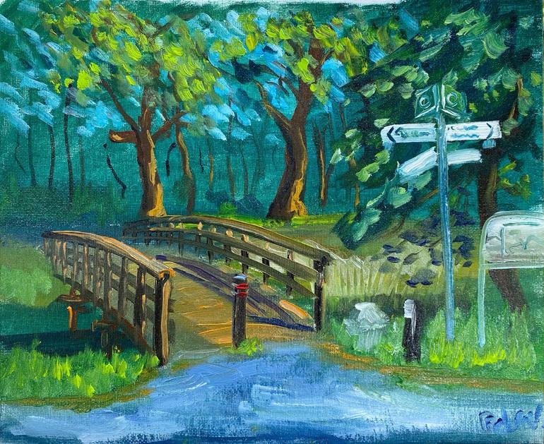 The painting depicts a small wooden bridge over canal in Coevorden, in the Netherlands.