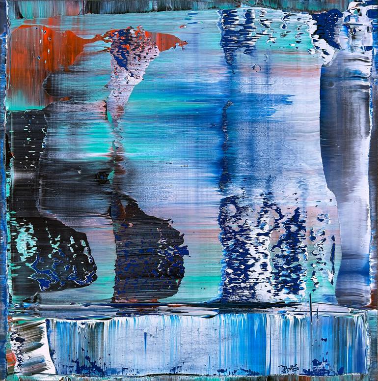 Original PMS Abstract Acrylic Painting On Wood Panel, Framed - 26" x 26" This is a unique PMS abstract acrylic painting that will make a statement in your home or office. This piece has a mature, neutral modern design aesthetic. The colors streak, fold and overlap, while also being contrasted by su...