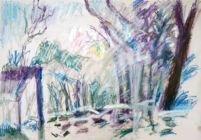 Unusual light after a snowfall. Oil pastel (Sennellier) on Mi Tients paper.I don't typically offer my sketches for sale. This piece has a strong presence despite its size and subtle color should be framed behind non-glare glass.