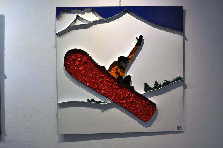 Work of the exhibition VIVRE which has 20 paintings and all together represent a story. This story symbolizes the experiences that a human being can have during his life, from birth to death. Snow representing freedom, passion, energy, extreme sport but also control. Blue sky, perfect snow, great d...