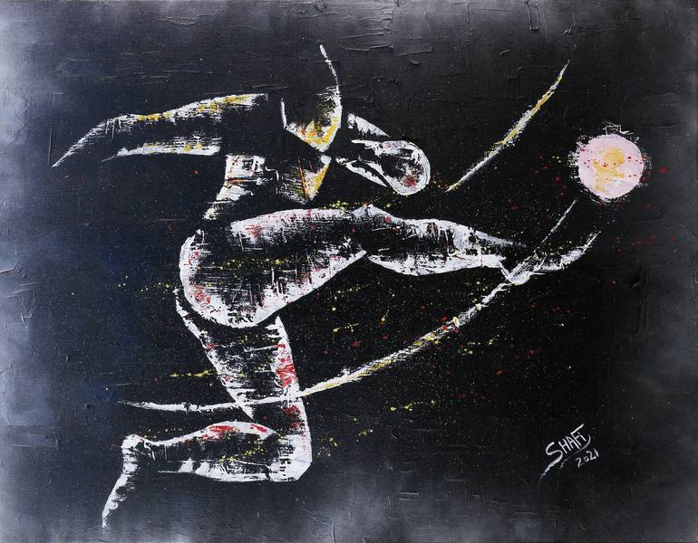 Soccer ⚽️ in action is an acrylic based painting. Painted with palette knife and little use of silver painting spray Canvas size 60cm x 80cm