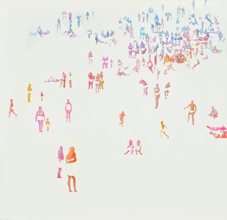 The artwork explores proxemics problems, rules of space use between people on the beaches of Western culture. I have devoted my attention towards the people and the positions they occupy in a beach. On a white canvas, human figures are depicted in shape of a symbol. Gradually density of human popula...