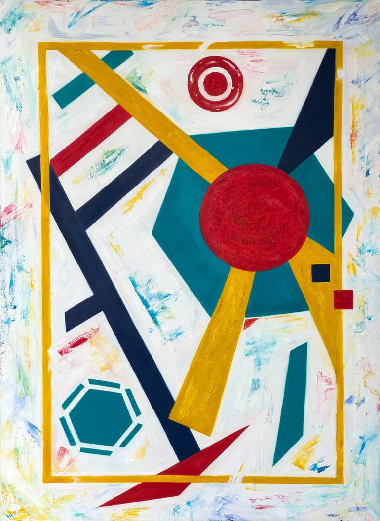 This unique painting is the second in a series of Suprematist illustrations on a space theme, created using acrylics (the original sketch was created in Adobe Illustrator). It was painted using a palette knife and a brush.