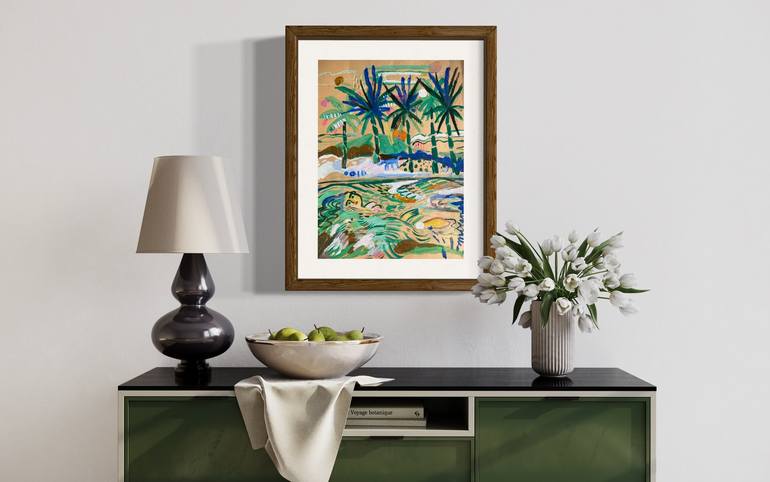 In her earliest memories, Alice de Miramon was always surrounded by old books, newspapers, prints and illustrations, with their faded, near illegible lettering, dreaming up imaginary authors of these ancient writings. As then, her house still abounds with old papers of various origins, imprints of the past that graduallly accumulate, taking on a patina over time. Early on, she became captivated by the contrast between the motifs and the colors of different works, later feasting her eyes on engravings that would later influence her work. Passages from poems began appearing on her paintings, barely visible in the finished work as though draped in a veil of timidity... She inherited a love for the poetry of Cocteau, Prévert, Verlaine, Baudelaire... The first buddings of a rich, dreamlike vegetation, taking root in the artist’s contemplative reveries. Diverse influences such as naïve oriental painting, the Douanier Rousseau, or even the ancient gildings of old paintings, reverberate, creating a rich visual language, a luxuriant garden.