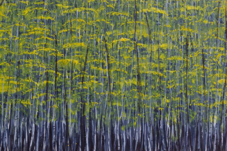 Inspired by the concept of unity, this piece evokes the feeling of standing together, like trees in a vibrant fall forest. The striking yellow hues bring warmth and energy to the composition, making it a focal point that uplifts any space. This modern wall art is perfectly sized to add a touch of s...
