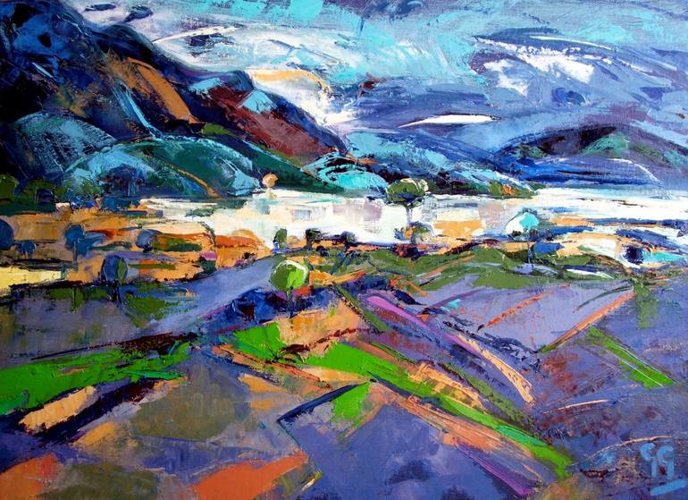 Explore nature's landscapes offers a lifetime of discovery. Remembering the ground is archaic and has a language all it's own. Against that permanence, an ever changing wind, light & seasonal variations construct different grammars. The delight of heathers interwoven with other flora allows spiritual colours of mauves and purples. Painting is about looking and 'seeing' intently. We all see a subject differently. I hope my work challenges the viewers notion of landscape. I grew up on a mixed farm. This allowed me the access and freedom to explore nature in all its glory. The landscape is changing radically with the effects of climate change and the advancements in farming practices together with urbanisation creep. The countryside is changing as we once knew it. My interest as an artist lies in the effect man has on the land. In particular the way farmers and land workers inadvertently create barriers that resemble 'installations' to keep in their livestock ( or not as is the case most often). Various configurations of obscure objects such as rusting corrugated sheeting, wire meshing, the odd tree stump or an old oil drum, when creatively assembled provide a barrier and an interesting installation deserving of an artist's attention. Drystane dyking outlines and defines areas of land, there for us all to marvel. When in decline they tumbledown and become dishevelled providing that gap or extra doorway into the vista ahead. Framing the landscape in a natural way for the artist to depict. It has been my aim to catch those disappearing elements where souls scour a living from those wild and woolly outcrops from the Hebrides to the open vistas of Northumberland and beyond.
