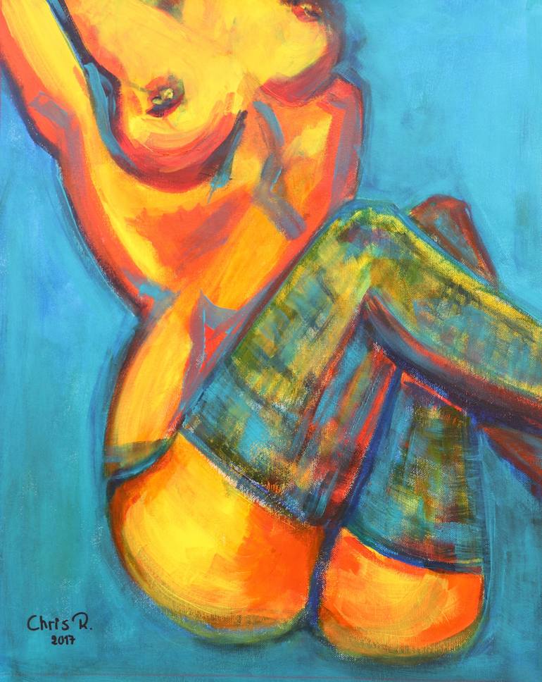 Painted on linen with acrylic paint. There`s a heatwave in Beirut here this week, we`re going to 36C this afternoon and a really heavy damp heat...Got a little inspired, or.... maybe I got a sunstroke?? ;) :) Christel