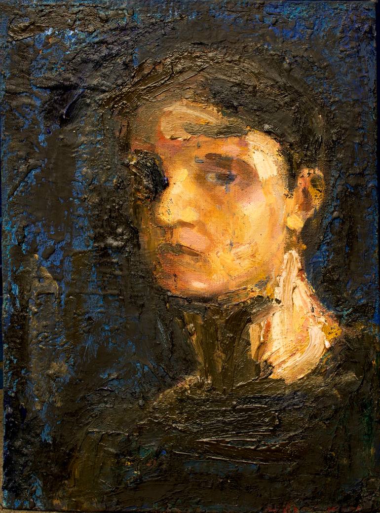Expressive painting. Pastoral manner. Lush color. An original work of art. All in black, grey etc.