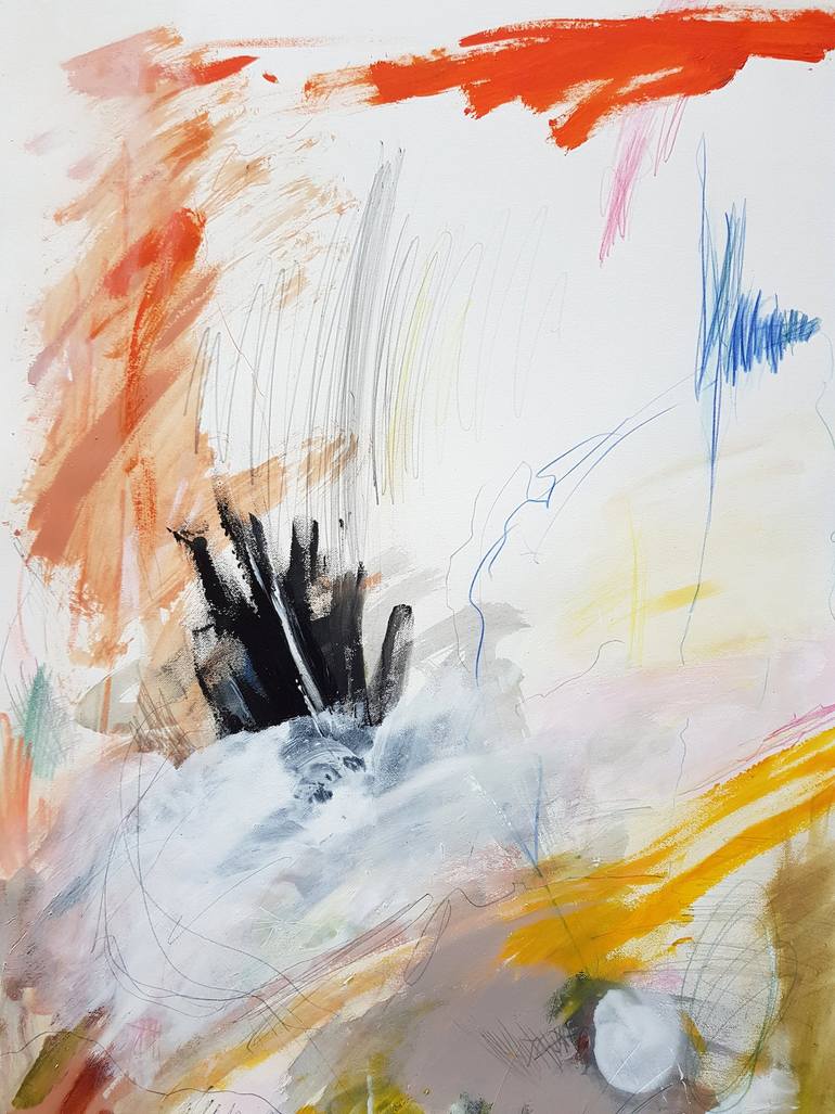 Abstract work on paper: Something New: 08 (Summer 21) 2021 Acrylic paint, Colored Pencil. Paper: Rosaspina de Fabriano, 285g/m² Signed and dated on the reverse. Signed Certificate of Authenticity. Leaflet pack included. This is one in an ongoing series of acrylic watercolor gestural abstracts.