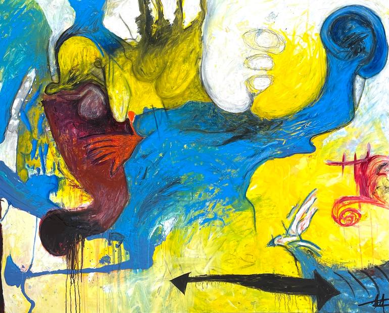 I want to capture the complex emotions and inner turmoil associated with falling out of love. The composition of the painting is centered around a couple standing in an embrace, their bodies delicately intertwined. A bird in flight symbolizing the deterioration of love and the fading of its once vi...