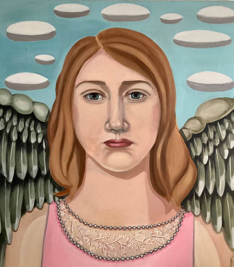 Something about Angels , there is I think definitely something about them . They are everyday people , who you meet or know , so many lovely people who could I believe bare wings . I painted this in a mix of both classical and modern style , I felt when I started her she needed to be in both styles ...