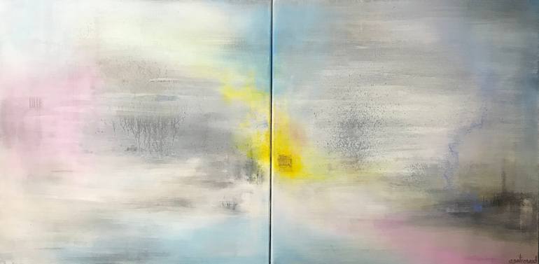 This diptych, with a very minimalist spirit, is close to lyrical abstraction. We find there the hazy atmospheres dear to the artist, which can make one think of Turner or more recently, of the American photographer Saul Leiter. These colored mists create here a luminous and light universe, thanks to...