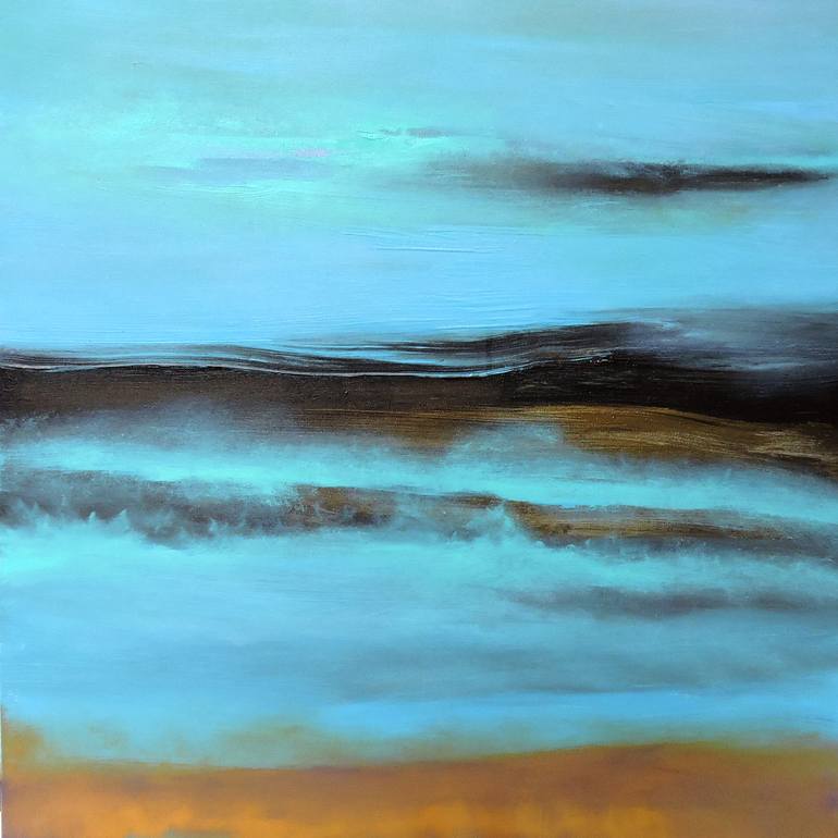 Original painting, abstract painting, oil and acrylic on canvas, modern art, landscape, palette knife, minimalism. Blue, Brown, Turquoise, Gold colors. Every painting is signed and comes with a Certificate of Authenticity and is wrapped carefully for shipment around the world to ensure safe arrival...
