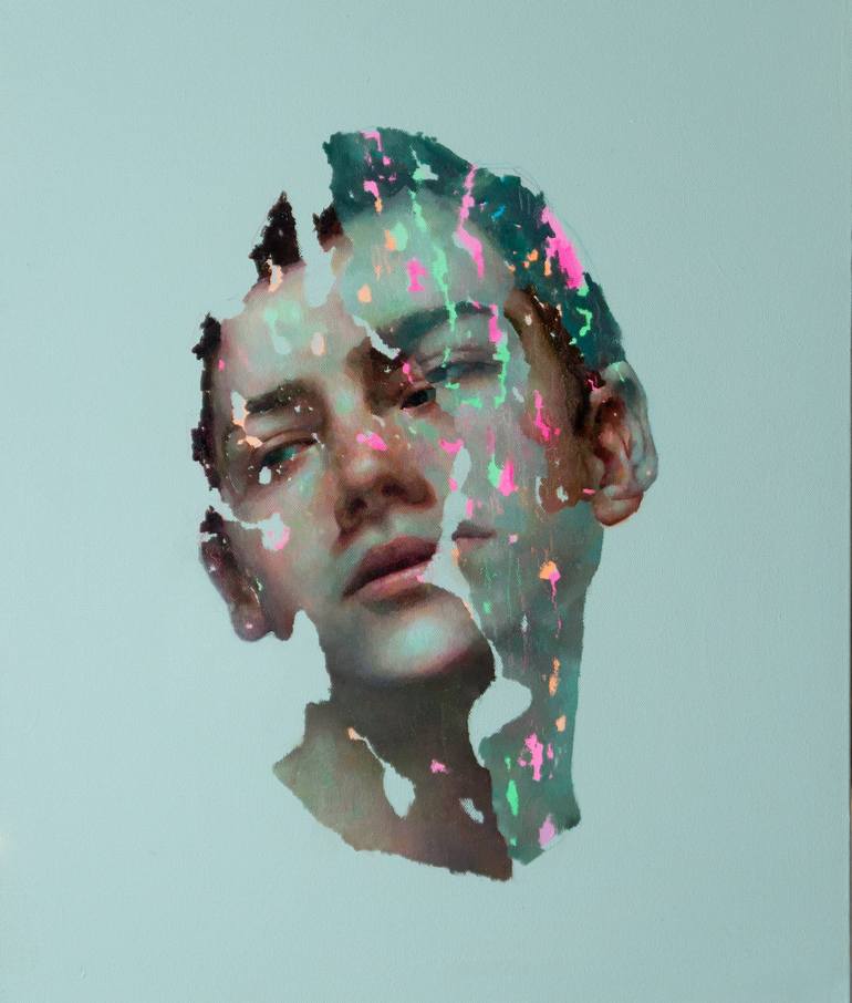 James Ormiston is a kiwi born artist who made the move to Barcelona in early 2022. He grew up on a farm in rural New Zealand before moving to Dunedin, NZ, in his late teens to pursue a career in the arts. He studied Fine Art for a time at the Dunedin School of art, but left when opportunities arose to found an art gallery and focus on his illustration work; The latter would ultimately earn him a spot in an Australian Art Residency Program in 2017, prompting a move to Melbourne. The residency program gave James the chance to transition away from illustration and into Fine art by enabling him to study under a variety of contemporary realist painters to hone his skills. For the past few years James has continued to concentrate on finding his voice in a fine art context while maintaining a commitment to finding joy in the creative process. Seeing creation as a practice, not a performance, has been an invaluable shift in mindset, to which he credits his recent artistic output. His practice has largely taken the form of experimental portraiture in the genre of “disrupted realism”. The current body of work “Pushing through the skin” explores themes of identity, multiplicity, and the concept of self. The work in this series seeks to distance portraiture from faithful representation by distorting the subjects into near-anonymity through abstraction, omission, and the push and pull of order and chaos. Veins of bright colours piercing through carefully rendered realism are a recurring motif within the series; a nod to the dance of contradictions that co-exist within all of us. “Do I contradict myself? Very well then I contradict myself, (I am large, I contain multitudes.)” ― Walt Whitman, Leaves of Grass