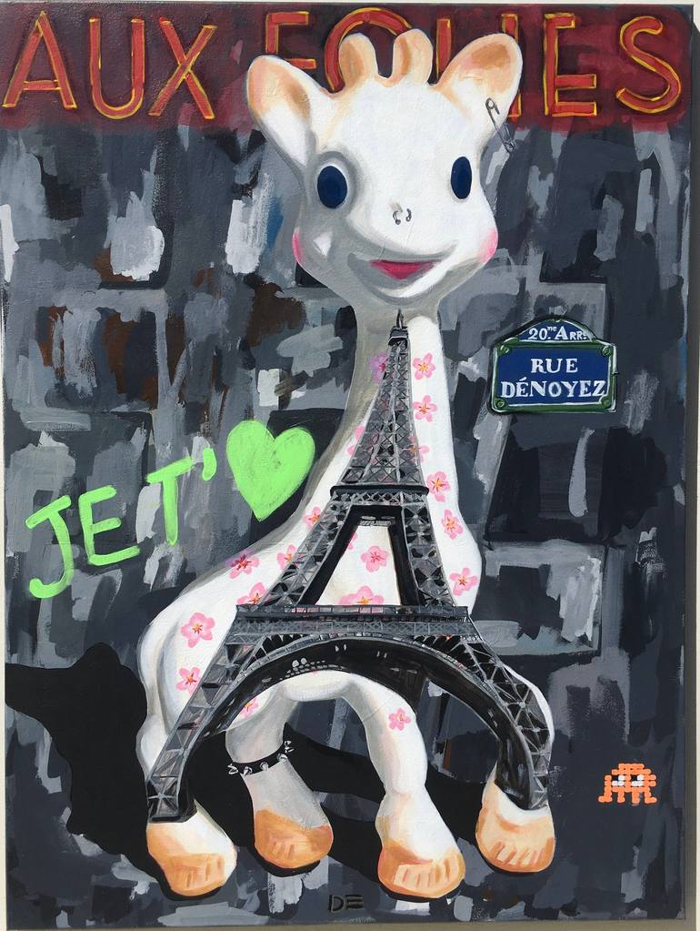 SOPHIE LA GIRAFE is an iconic French teething toy that basically EVERY French baby has owned for the past 50 years. I paint in a style I call "RETRO POP" and this is the perfect subject for me.... Using the iconic Girafe image and shape - but playing with it. Here I imagined that SOPHIE is now a re...