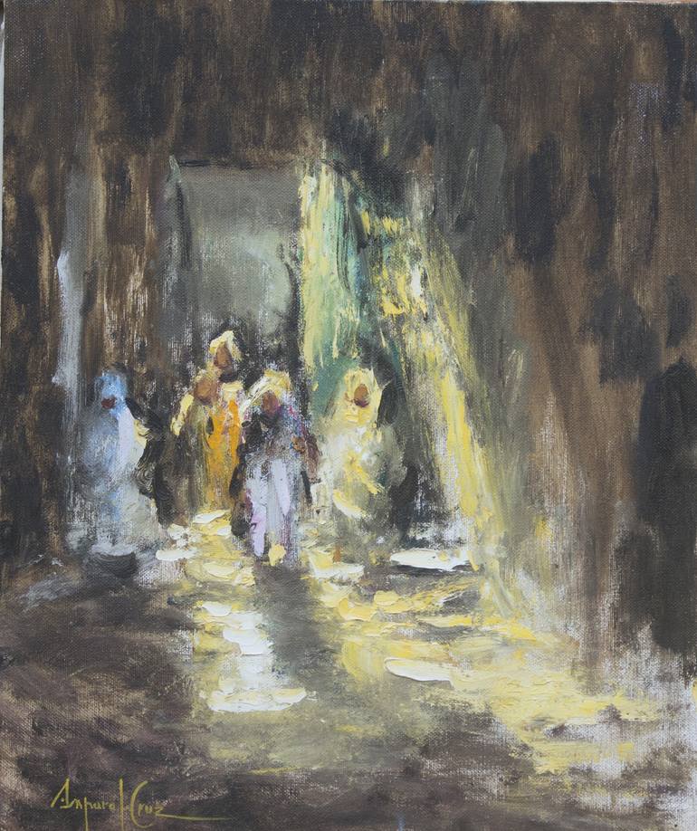 About Amparo Lopez Cruz Amparo Lopez Cruz was born in San Roque (Cádiz), in her parents’ house and grew up among the smells of turpentine and oil canvas of her grandfather’s work shop, the famous "José Cruz Herrera", Chairman of the National Arts Academy and founder of the prestigious museum that bears his name. The first Amparo’s toys were her granddad and mum’s brushes, the first smell was that of both painters’ dissolvent, her first colours discovery were those of her mum’s colour palette and those from a large number of paintings hanging on each wall at home starting with her own ones painted with much love by her grandfather. Amparo started as a child to appreciate the art of painting and developed already then a special skill in mixing colors and understanding the art of painting. She grew up as a child and a teenager watching her granddad working and learned from this universal painter the basic rules for painting. Brought up among her grandfather and mum’s paintings all along, this daily influence and inspiring environment developed her talent. The lightness of her colours, present throughout her work, shows as well the sentimental attachment for orientalism, so deeply rooted in the paintings of her predecessors. Amparo Lopez Cruz is the living proof that talent can be inherited.