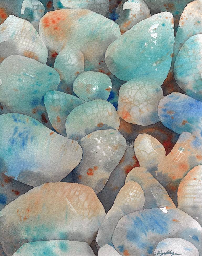 All my love and efforts in art will forever be a reflection of the encouragement my father gave me. This painting, "Soul Stones" was painted in mourning. I walked along the shore thinking of an excerpt from Revelations 2:17 "give to each a white stone" speaking of when we get to heaven we are given ...