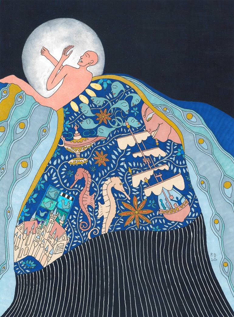 This work is about the magic of sleep. It is an invitation to travel. As in most of the works in the [Viva La Vida] series, Patrick Gourgouillat used two words as a basis for this work. The artist has drawn on the words "silkworm cocoon" and "wave". The artist was also inspired by the characteristic...