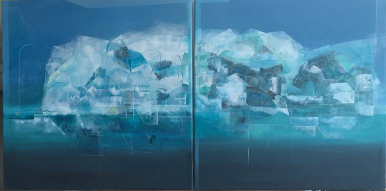 Travelling to Iceland is always inspirational to me; icebergs, blue ice , silence, tranquility, peacefulness, perfect world and the undeniable existence of God are in your thoughts when visiting the World's North. This painting is a diptych (2 panels each one is 44x44 cm)