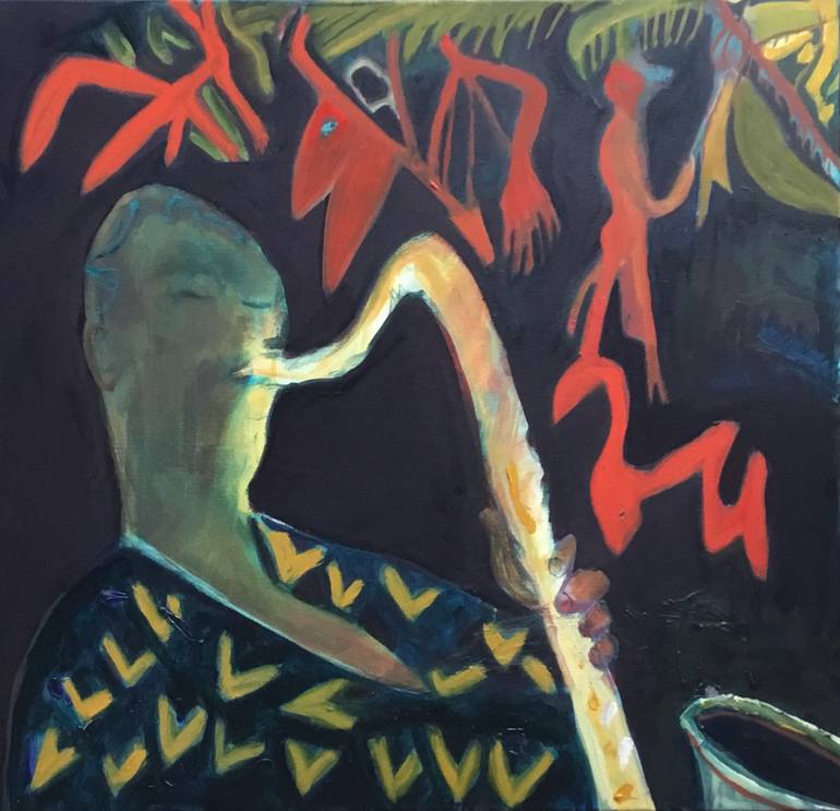 Painted while listening to a rendition of Soy CALIFA on the Bluenote label by the late great tenor saxophonist Dexter Gordon. I try to capture the feeling of jazz in theses fast oil paintings.