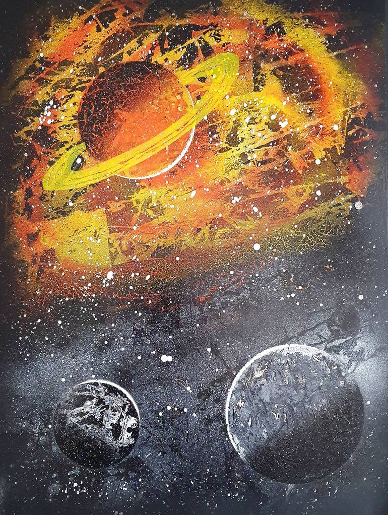 My fantasy about space and what it can be Space paintings with spray paint I am inspired by space and abstraction.