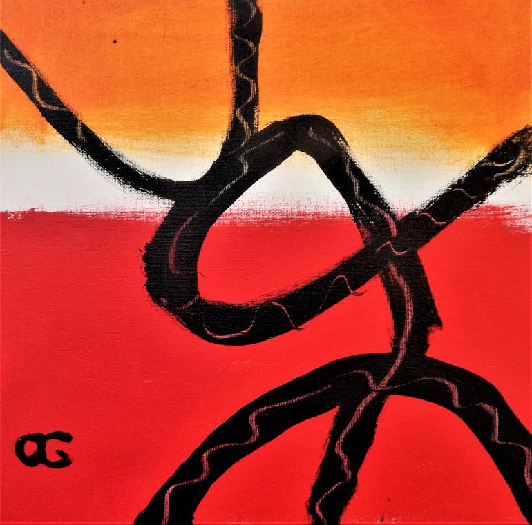 Acrylic on canvas mounted on corrugated board. Part of a series inspired by a trip to Spain and my interest in calligraphy and ancient forms of writing. Signed on verso; initialed on front. No frame needed. Ready to hang.