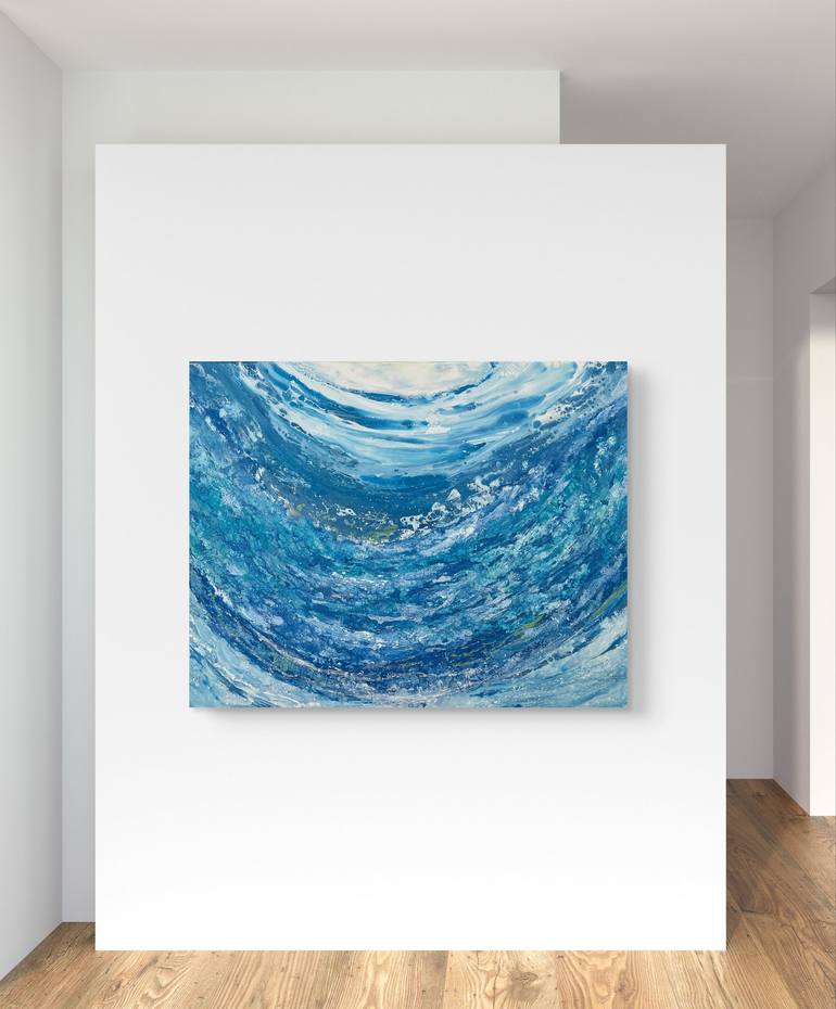 Textured Abstract Painting — “Spiraling Depths” A dance of water and light, capturing the ocean's endless motion and serene power. The craquelure texture, created with special texture paste, adds depth and a timeless touch, evoking the delicate patterns of sunlight on water or clouds reflecting on t...