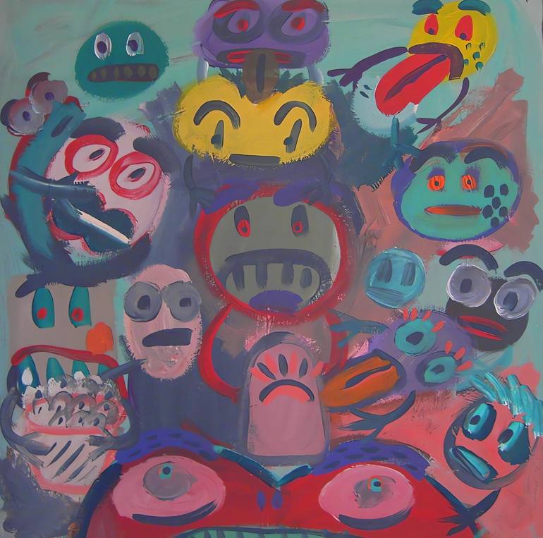 Another of my faces series from the early 2000s, the painting is all about the interaction between the different creatures and their various facial expressions