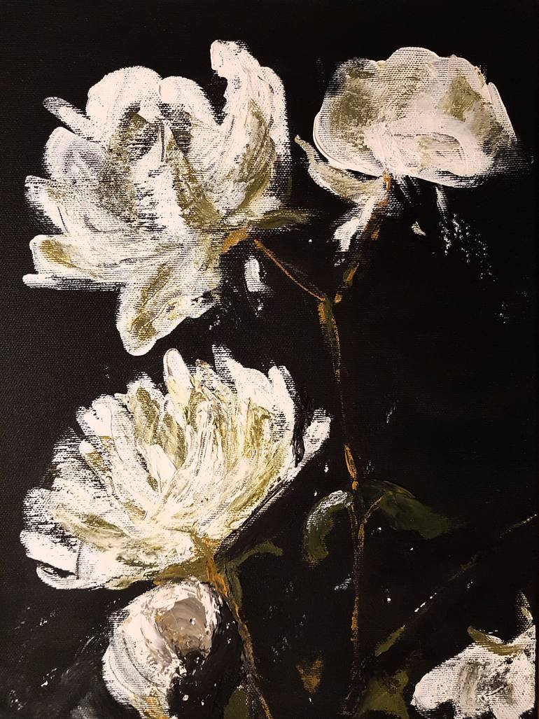 Very elegant splash of white flower over black canvas!