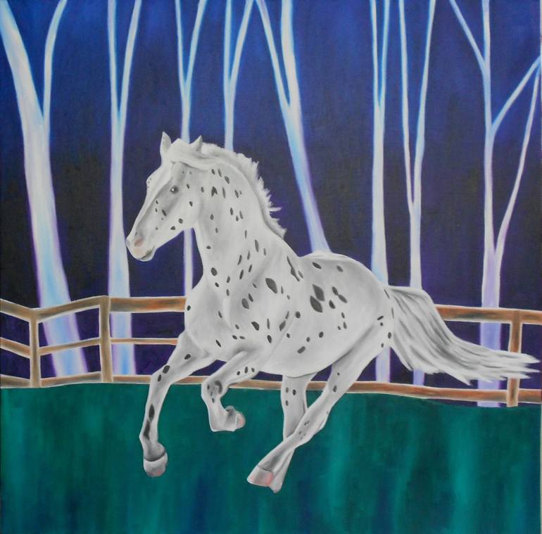 I love spotted horses - the Appaloosa horse breed - the rainbow horse for their hooves that shine like rainbows. I read a book as a child about a story with an Appaloosa horse and I fell in love. As an adult I still love this breed of horse and so created this artwork. Stretched canvas on a wooden f...