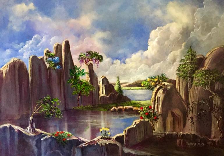 A theater in the sky, clouds behold God's everlasting presence in His creation that shares His light on the world around us. Hand to canvas humbly coveys a representation of the wonders He has created for our enjoyment. Through brush, paint and canvas the lifelong passion of this artistry, through this special medium, continues. I thank God above for this opportunity He Provides. My paintings are from imagination and begin on a white canvas that has been toned. I do not use photographs, but access imagination, which is most important for myself in being a painter.