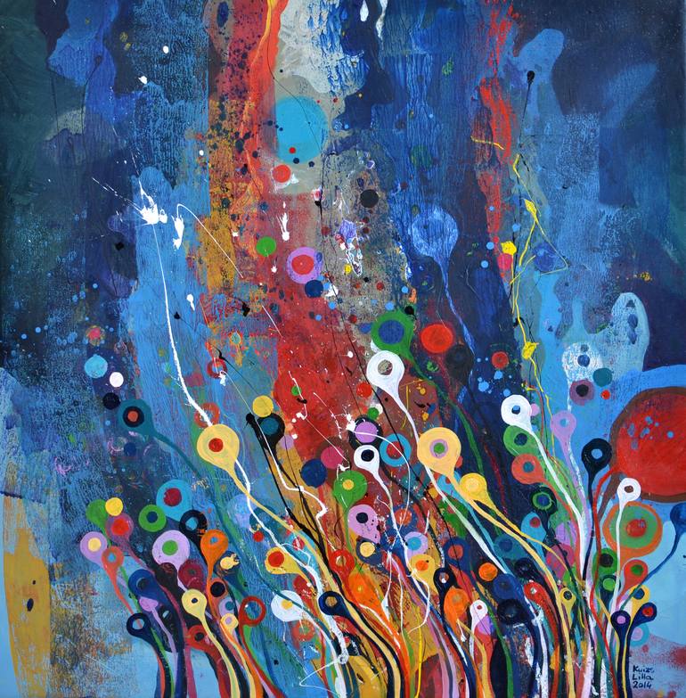 New magic grass painting. Spring a colours. Organic abstract oil painting, streeched canvas, ready to hang.