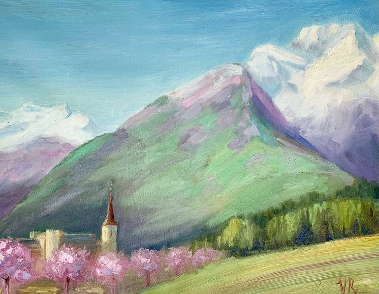 An amazingly beautiful village Gstaad in the Swiss Alps, stylish and distinctive chalets, a wonderful mountain panorama .. The painting was painted in the open air workshop during the cherry blossoms. My paintings are not only a wonderful memory of the places I have visited, but also a good meditat...