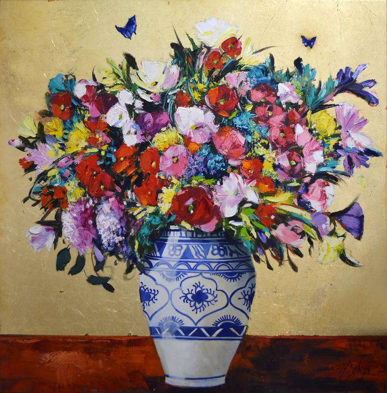 I can get lost in my paintings whichever subject I am doing at the time. I am constantly in the process of learning. I would describe my contemporary floral paintings as expressive, sumptuous yet pretty. I try to use everyday objects, like blue and white chinaware and flowers from the market and br...