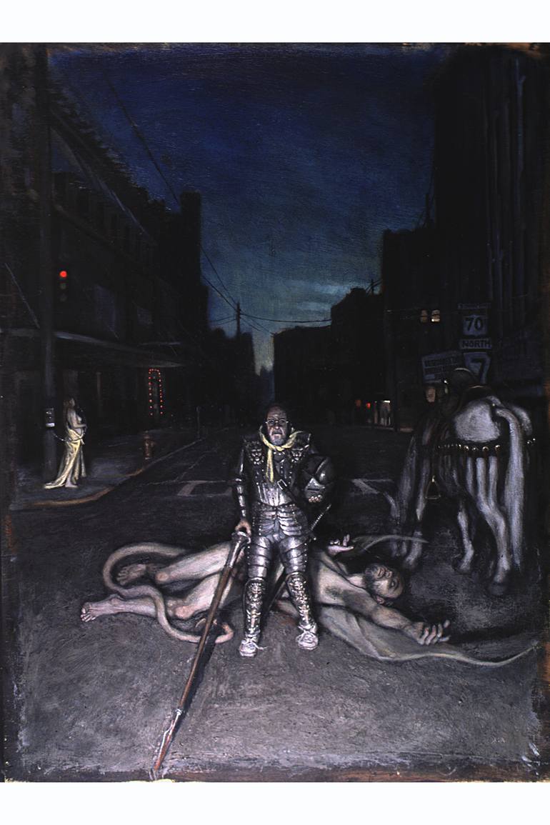 Oil on panel George seems to have killed his dragon - who bears a striking resemblance to himself - but the damsel is unimpressed. She's across the street, making a phone call, probably to a boyfriend. PAINTINGS I use the materials and styles of the Old Masters to express images and ideas of the ...