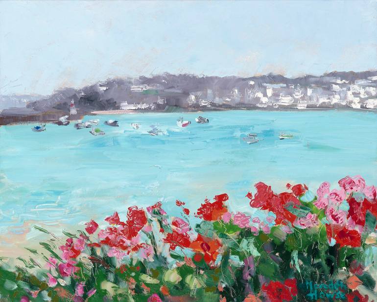 Immerse yourself in the idyllic coastal charm of Cornwall, UK, with Meredith Howse's "St Ives." This original oil painting captures a picturesque seascape, bringing the tranquil beauty of the English coast into your home. The artwork is beautifully framed and ready to hang, offering an effortless wa...