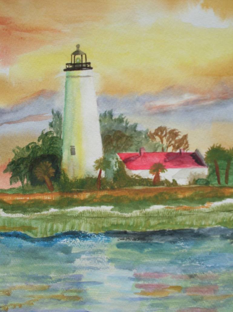 Painting is Mixed media: W/C, acrylic, pen. 12X16 on paper. My image is number 5 on Google Images for St.Marks Lighthouse.