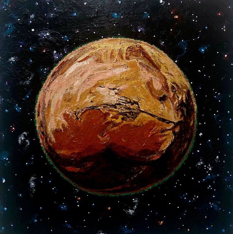 This painting was part of my series of 11 works called "Friends Are My Solar System". In the series, I paired each planet and the sun and the moon in the solar system with a friend or family member who I thought fit the personality of that heavenly body.