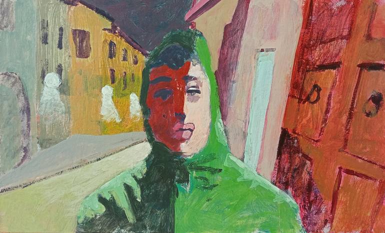 I take a surface, I leave marks on it, colored shapes several times, I erase and redo everything. I like to leave every degree of intensity I felt in doing it in a picture. I mix wax crayons with tempera pencils and acrylics, leaving everything I am at the time of painting in the picture. I define myself as an expressionist who paints faces, bodies, landscapes, the spaces around anything.