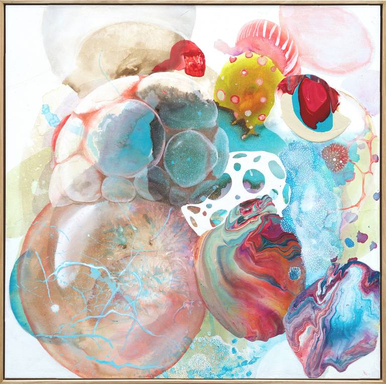 Amanda Krantz is an Australian artist whose work has been informed by residencies in Japan, Thailand and Tasmania. Her practice is an exploration of materials, science and nature, and image making. She completed her Bachelor of Visual Arts at Queensland University of Technology in 2001, and has since continued study at the University of Melbourne solely to inform her arts practice. Her most recent achievements include being selected and commissioned to create 10 large paintings for Peter Millard & Partners in London. She was also recently one of thirty painters worldwide to take part in ‘Premio Combat’ in Livorno Italy, was a Saatchi Online‘Back to Nature’ finalist, and a finalist in the prestigious Clifton’s Art Prize. Krantz’s most recent solo show ‘Plasmo’, held in 2015 at the GallerySmith in Melbourne, was an exploration of alien yet eerily familiar forms and landscapes. Other solo shows include ‘Hypnagogia’ at the Angela Robarts-Bird Gallery in Melbourne, Graydon Gallery and Percolator Gallery in Brisbane, and she has been involved in group exhibitions worldwide including Time Square in New York city, and in the Museo Di Storia Naturale in Italy. Current Artist Statement: I think of my work as organic-psychedelia. They are familiar representations of ecology, but not quite of this world. My process is underpinned by a playful exploration of materials, and questions the role of painter in painting creation. The method of paint delivery to canvas, in random pours, throws and squirts, employs nature to mimic nature. The natural fluidity and reactivity of paint mixtures, is itself alive in it’s own ability to move and mix, playfully creating chaotic patterns and diacritic effects. I often act merely as a facilitator, allowing the paint itself to capture the essence of time and place. It’s a scientific process, executed organically, creating science fictional landscapes and quasi-alien life.