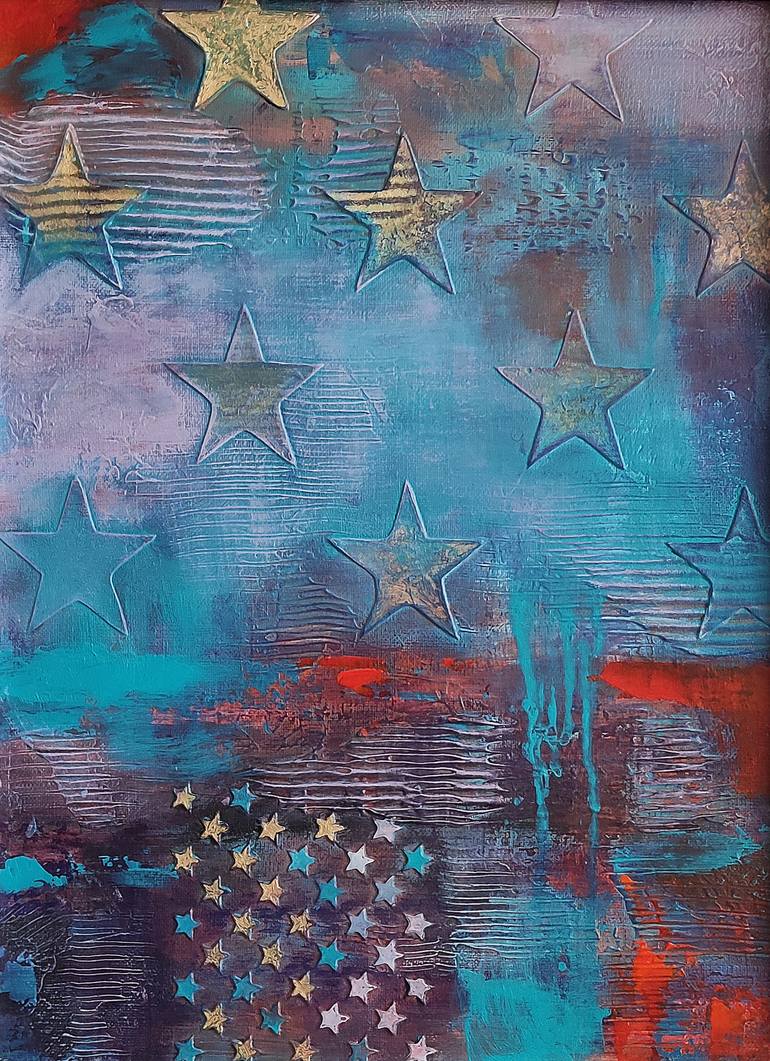 Sometimes I come up with images that I can't create in figurative art, then I make abstractions. Here is one of them. Here I depicted a Starfall) The camera slightly distorts the color of the image, so I took some pictures. Pay attention to them Framed and ready to hang.