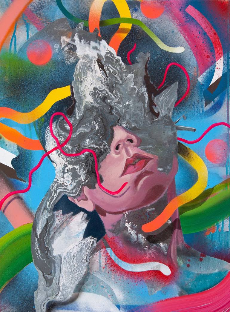 This original painting is acrylic and spray paint on canvas and is a part of large portrait series that has been going on for some time and is continually evolving. This particular study was a part of a smaller series within the larger group of portraits where I explored painting the head with a com...