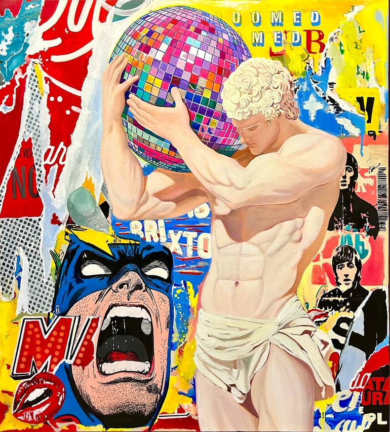Let’s be honest, aren’t we all a bit like Atlas, crushed under the weight of the world’s burdens? But hey, I thought maybe it’s time to lighten the load—why not swap the world for a disco ball? It’s shinier, more colorful, and who doesn’t need a little sparkle in their life? This artwork is inspire...