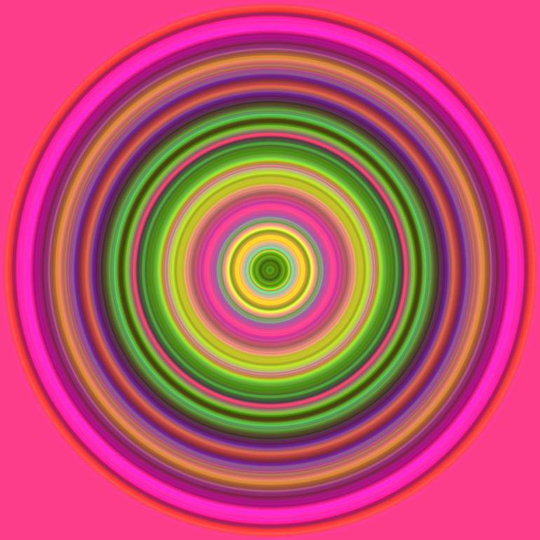 These paintings owe a debt to the Op artists of the 70's. The colors are derived by analyzing images of nature, people or in this case, stem cells.