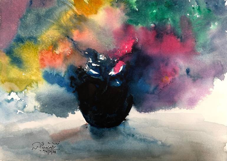 Playing with watercolor: technique is wet-into-wet. Its my lounge flower vase place it in sun feels like all flowers are merging with in. Watercolor is my favorite medium it's give me liberty to play with colors and water give it's own flowing impression which is unimaginable. At this process I'm fe...