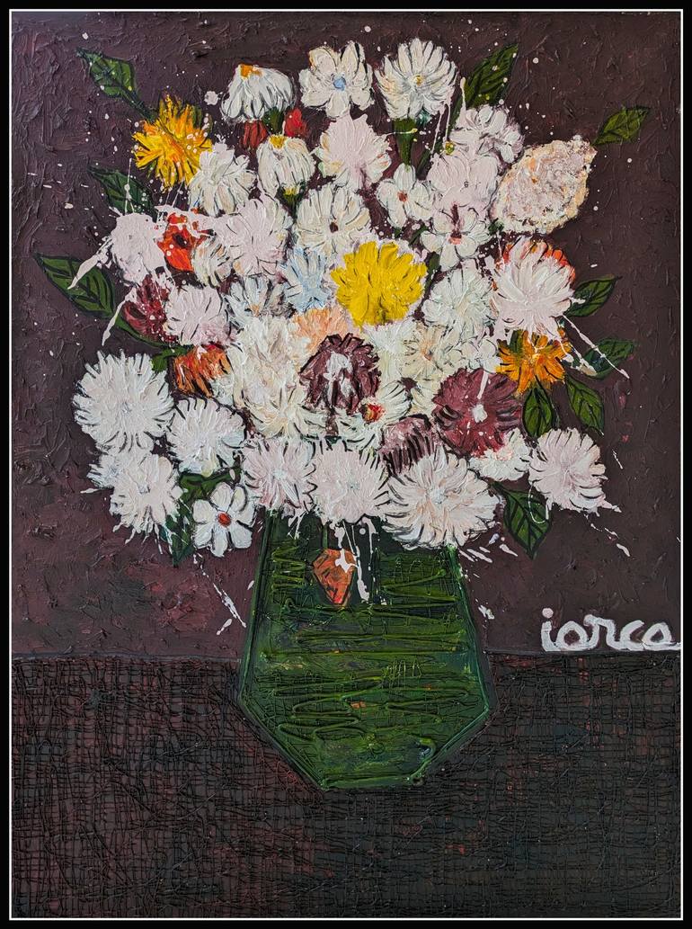 original 3D modern contemporary flowers still life painting on canvas