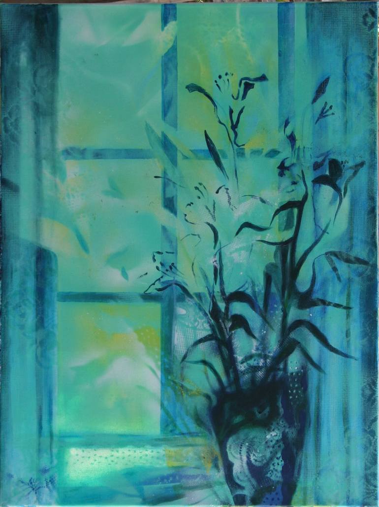 This work is set by a window, showing the movement of the light across a vase of flowers. The light dances across the space like the feelings you have when you see a loved or the anticipation of seeing them.